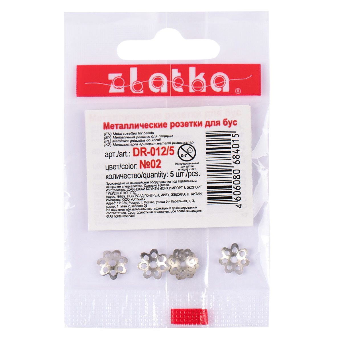 Розетка для бус " Zlatka" DR- 012/ 5 служат для декоративного обрамления бусин. Они предотвращают истирание покрытия бусин в месте их соприкосновения друг с другом и продлевают срок службы украшения. Диаметр 7 мм. Диаметр отверстия 1. 5 мм. 100% железо. Сообщить о неточности в описании